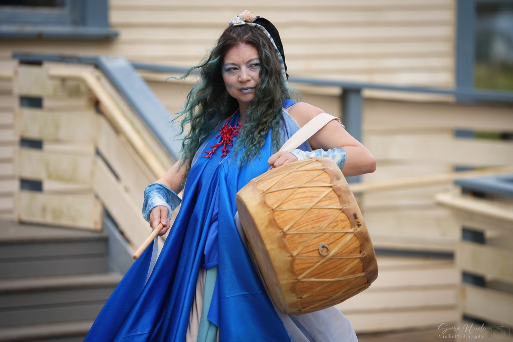 For this score, I drew inspiration from the music of Sardinia, Italy, Korea, Ireland, the UK. You will hear the farmer’s drum of Jindo called the Jul Buk, the seashell trumpet, the reed flutes called Launeddas, the Triangle, the Piano, the handheld drum called the Sogo Buk, clusters of goat shepherd’s bells called Sa Carriga, the Celtic Harp, calf-worn Morris Bells, as well as additional instruments supplied by our wonderful cast, and a capella singing.